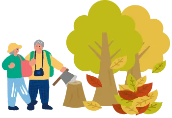 ボランティアによる活動木を切る体験、四季を感じる道、ボランティア同士との交流、環境の整備活動が学べることや、様々な体験ができます。社家郷山で一緒に活動しませんか?